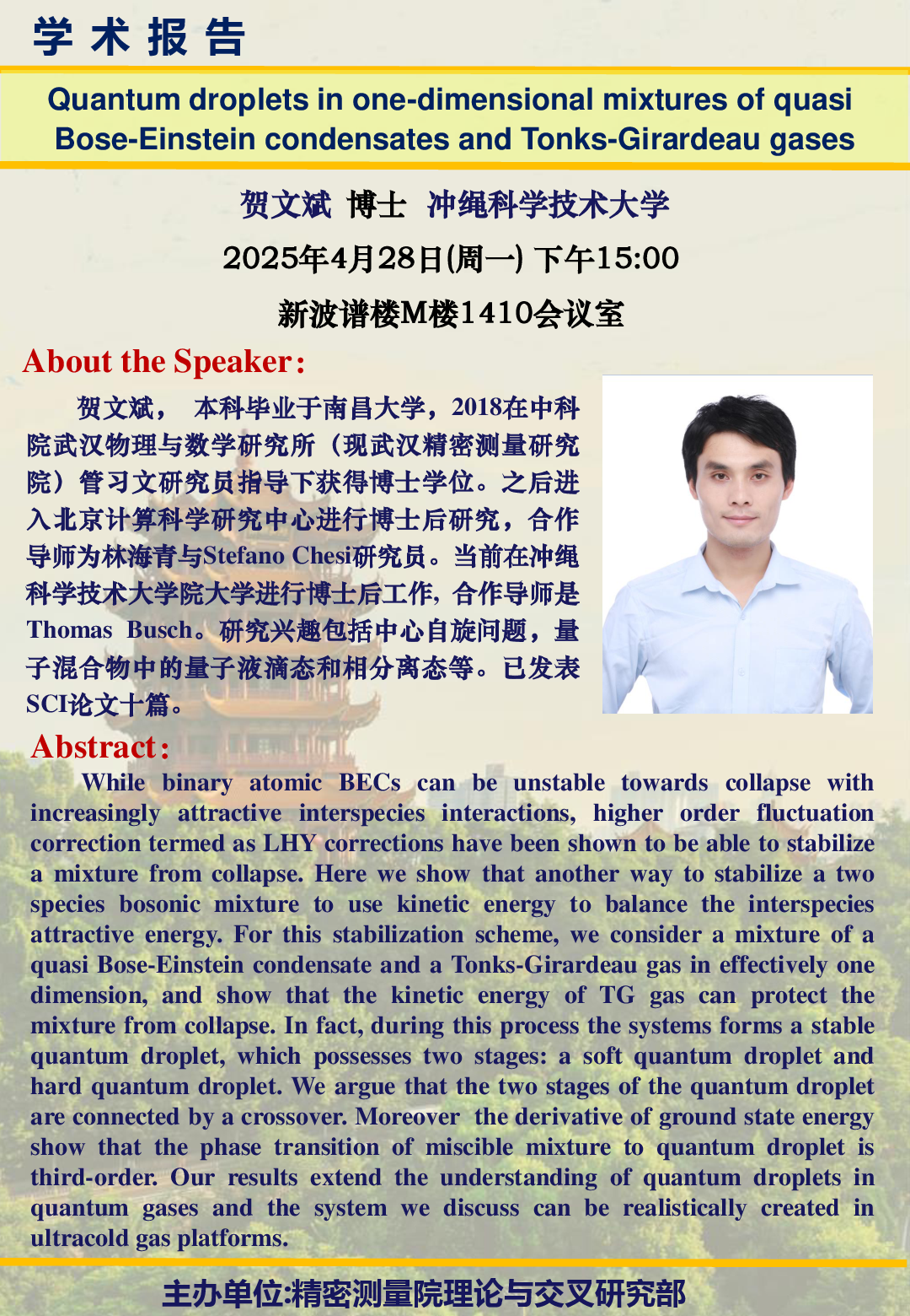 2025年4月28日EVO视讯官网理论与交叉部学术研讨报告